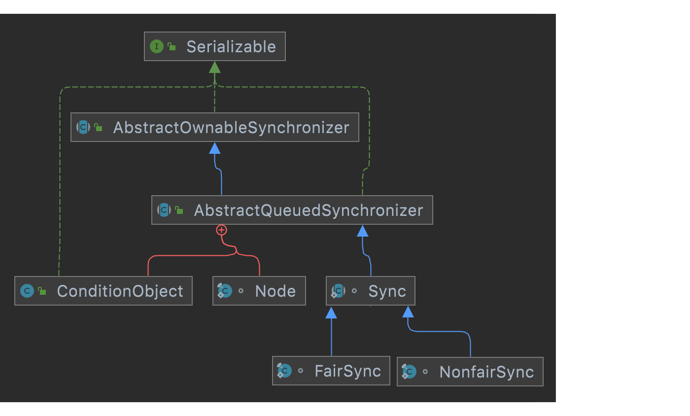我们在介绍AQS的时候介绍过,它是一个FIFO队列,节点类型为AQS内部的Node类。当一个线程尝试获取锁失败时,它会被封装成一个Node节点加入到队列的尾部(每个节点(Node)代表一个等待的线程)。当锁被释放时,头节点的线程会被唤醒,尝试再次获取锁。